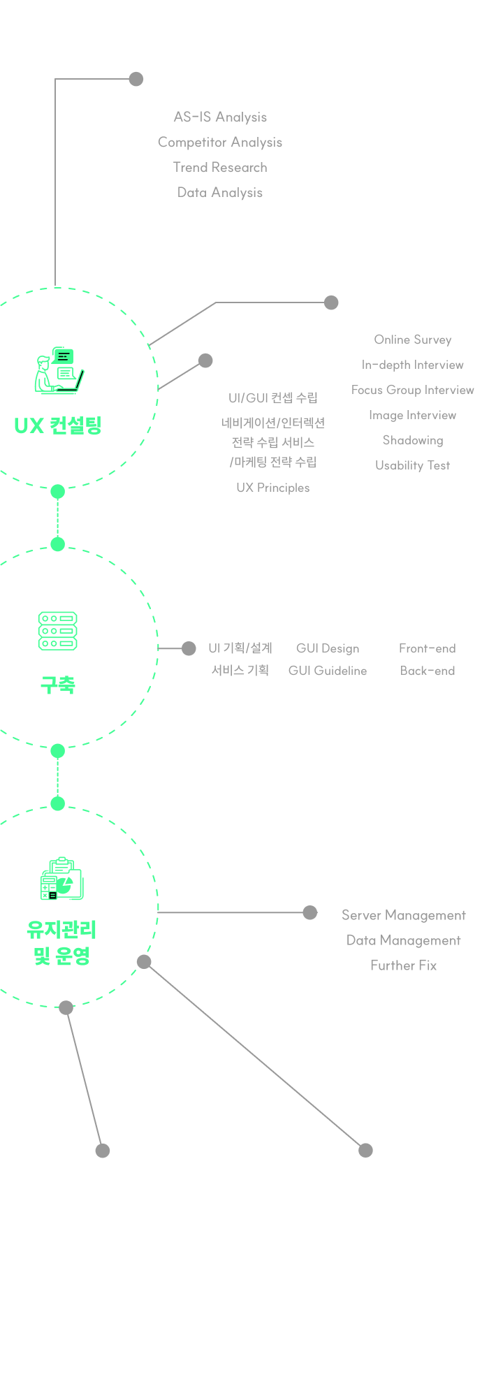 UX 컨설팅부터 기획, 디자인, 개발, 운영관리의 솔루션을